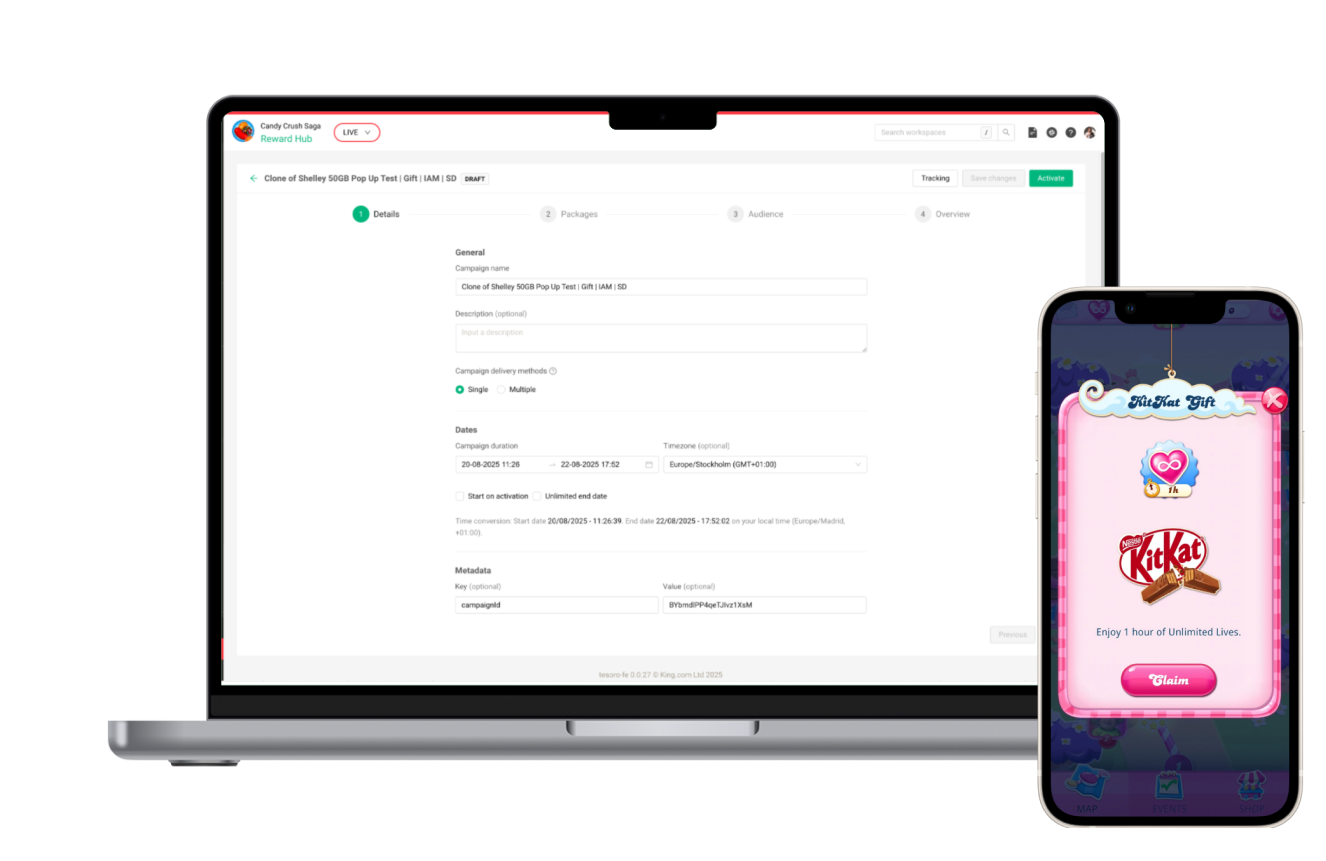 A new in-game rewards configuration tool for Live Marketing teams, supporting large-scale brand partnerships like KitKat